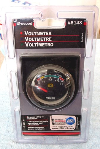 This item is a black finish 2 inch voltmeter gauge kit by Equus. Great for cars, trucks, or marine use. In-dash on-dash or under dash-mount, mounting hardware is included. Lighting kit , instructions and domestic adaptors are also included in the factory sealed package.